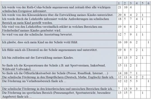 Um Eltern und Erziehungsberechtigte die schulische Arbeit bewerten zu lassen, führt die Ruth-Cohn-Schule regelmäßig Befragungen durch.
